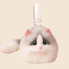 Versatile Handmade Small One-Shoulder Cat Plush Bag - Ideal for Female Messengers