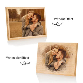 Custom Photo on Wood, Engraved Photo on Wood with Watercolor Style, Custom Wall Art, Personalized Portrait from Photo as Long Distance Gift.