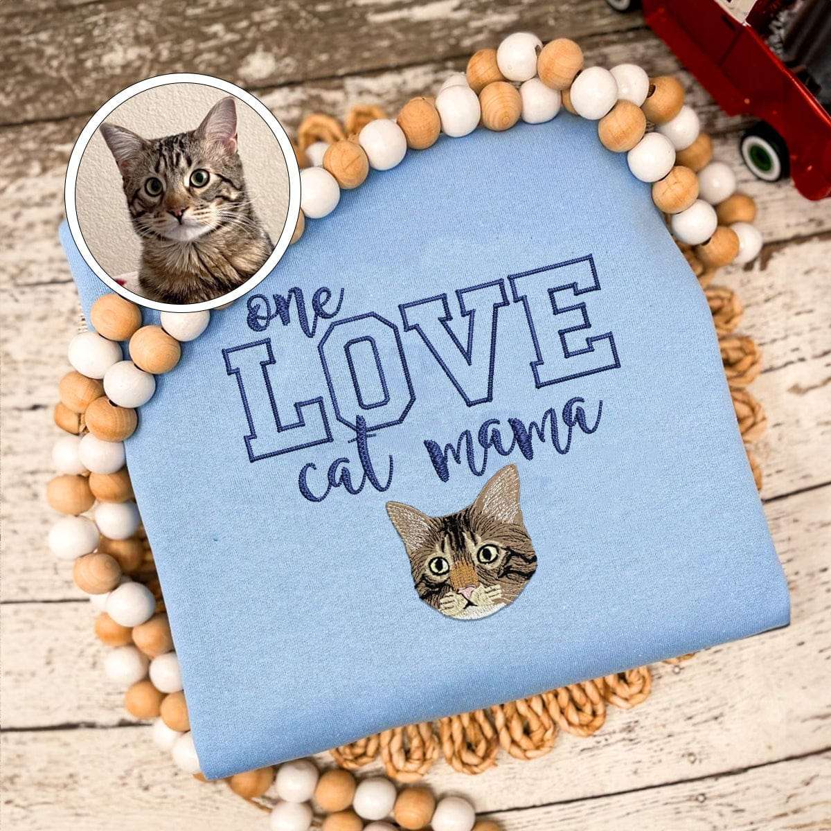 Custom Embroidered Sweatshirt, One Love Cat Mama for Cat Lovers