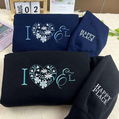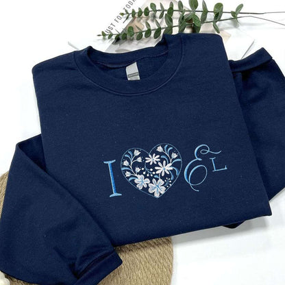 Floral Embroidery T-shirt/Sweatshirt/Hoodie with Customizable Pattern on Cuffs and Customizable Position on Chest