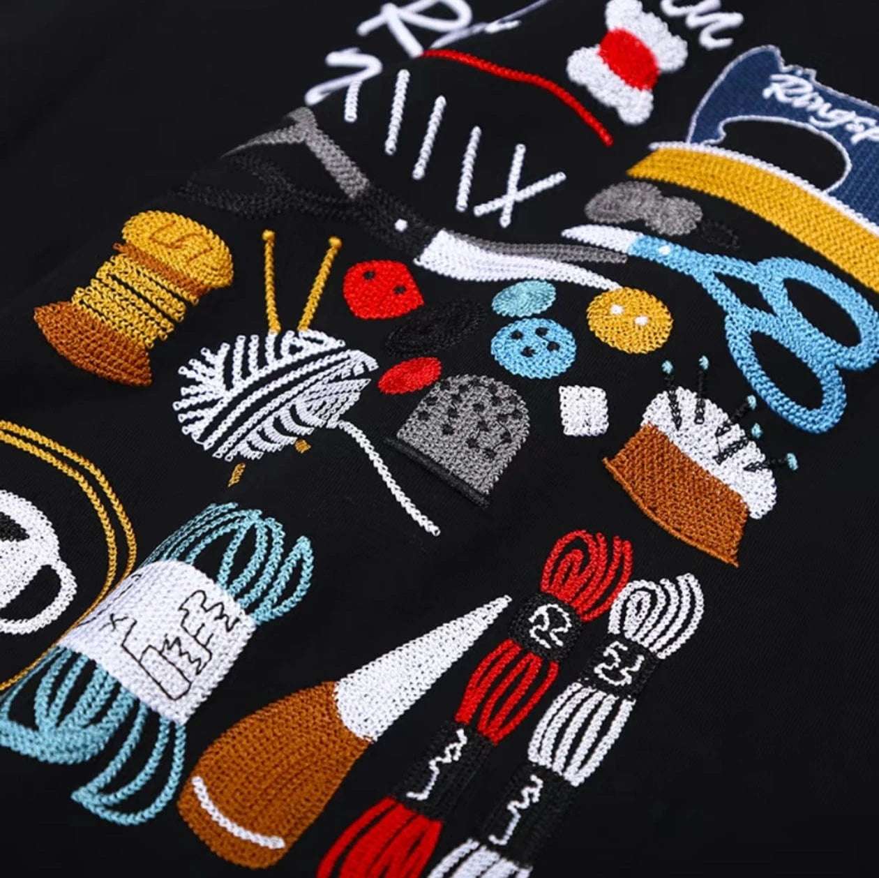 New Arrivals Summer Unisex Loose Short Sleeve:1.3 million - stitch high-quality Heavyweight Pure Cotton Embroidered Fashion T-Shirt