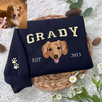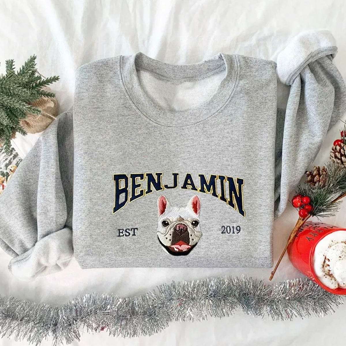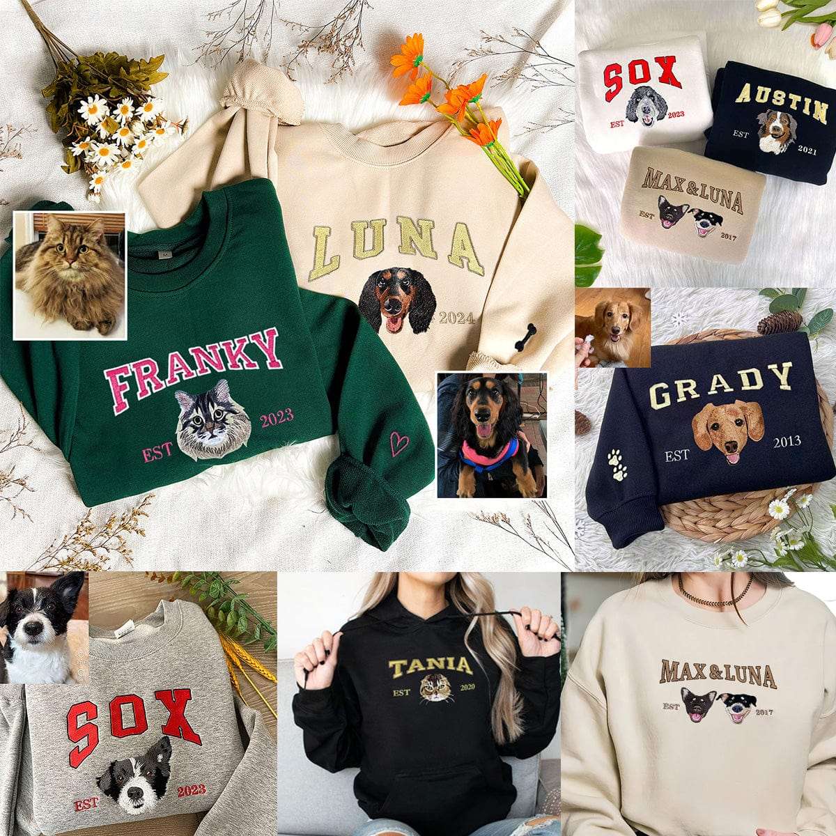 Personalized Embroidered Pet Face and Name Est Sweatshirt for Pet Lovers