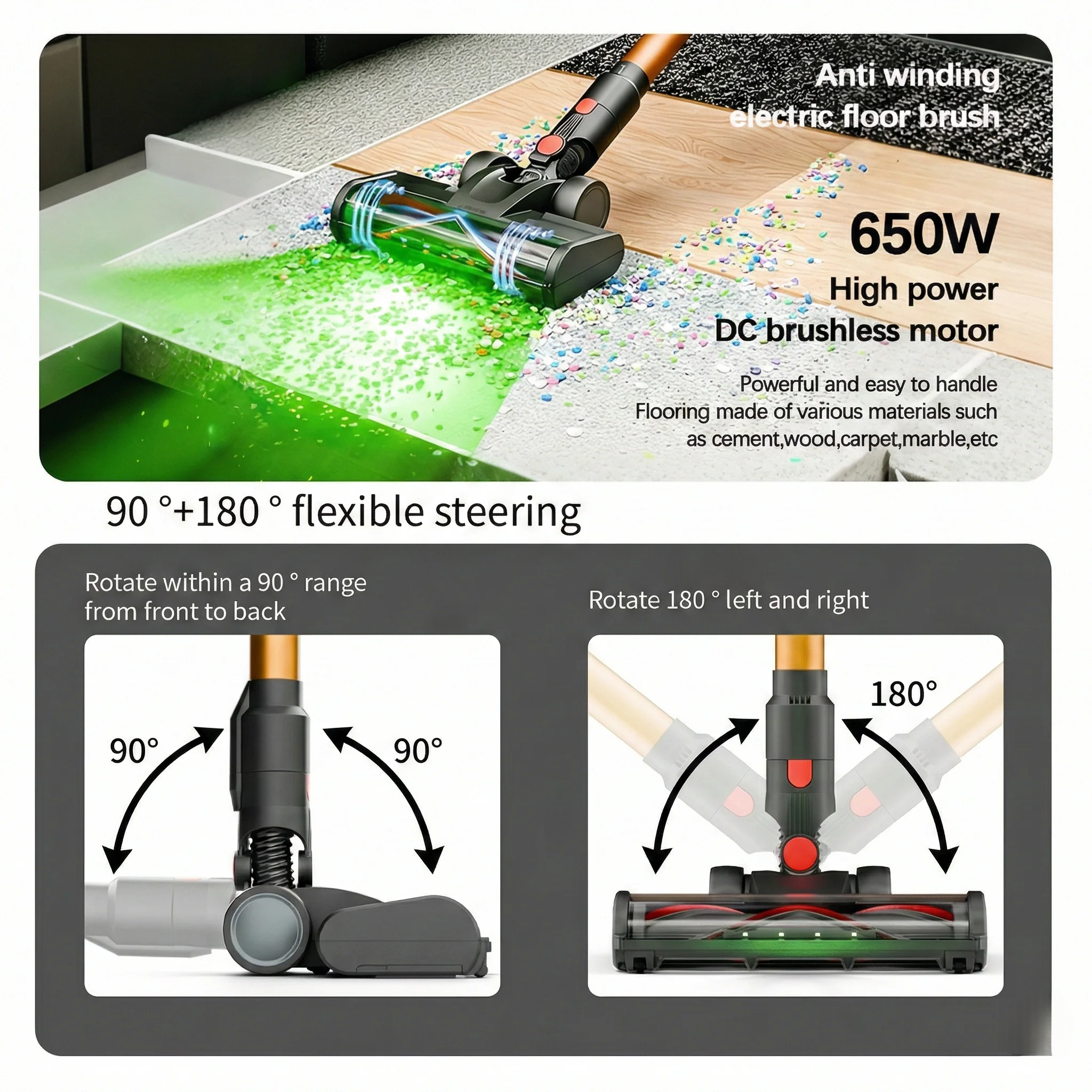 Floor brush: Anti-winding electric brush