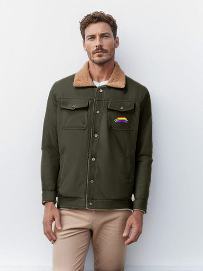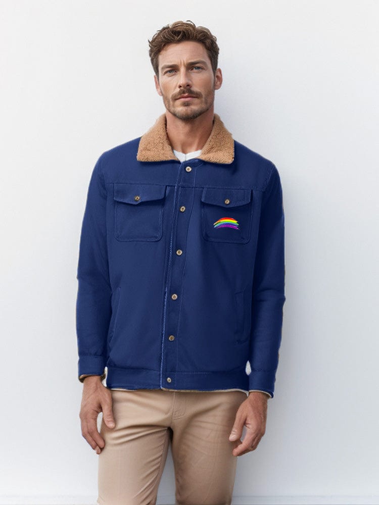 Embroidered Autumn/Winter new men's jacket with fleece-cotton cargo casual jacket men's coat