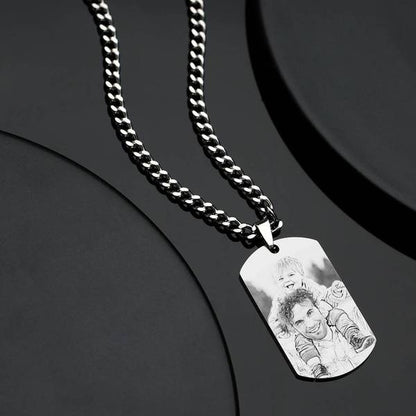 Personalized Stainless Steel Tag Photo Pendant is the perfect way to keep your greatest memories close to the soul. This custom photo necklace is made of sturdy, stainless steel that will never tarnish so you can hold it close for many years to come. The perfect thoughtful, fun, and unique gift for any occasion! We has a ton of customized jewelry options that are reasonably priced and make for great gifts for all sorts of occasions like birthdays, holidays, anniversaries, Father's Day. Thanksgiving Gift Engraved Heart Tag Photo Necklace Stainless Steel.