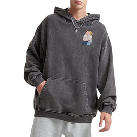 Washed hoodie Portrait embroider music player Couple family gift