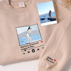 Music Player Elements Combined with Couple Photos | Unique Design Embroidered Hoodie for Couples | Fall Edition, Perfect Couples Gift
