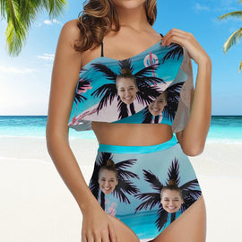 Viso personalizzato Ruffle Summer Bikini High Woming Woming Bareding Aboves- Beach