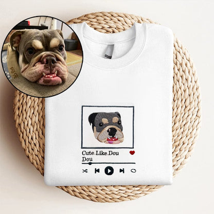 Bulldog Photo Embroidered Sweatshirt, Custom Embroidered Hoodie