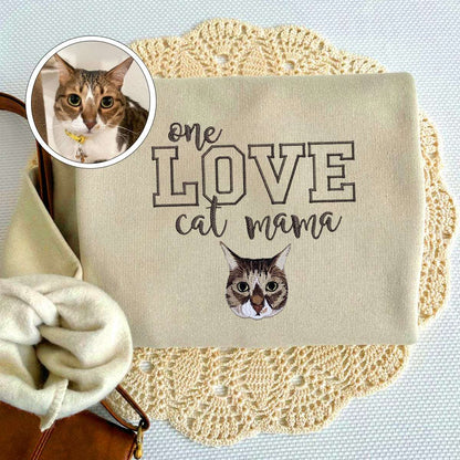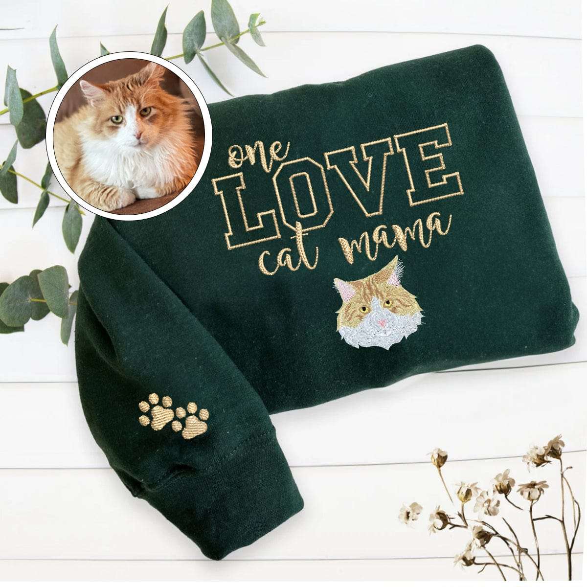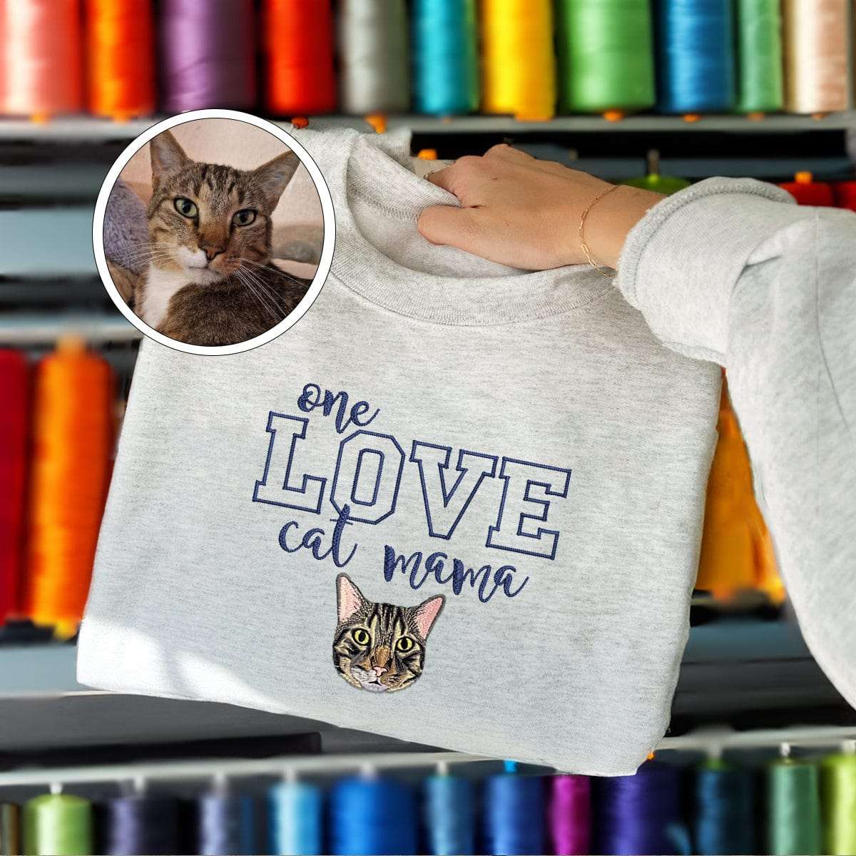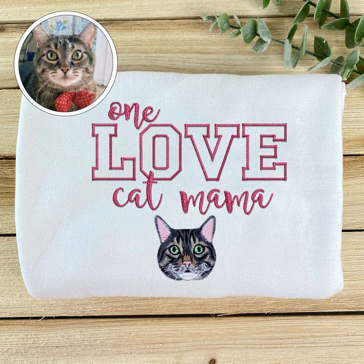 Custom Embroidered Sweatshirt, One Love Cat Mama for Cat Lovers
