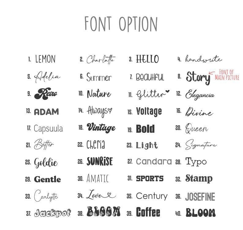 "Printed Name and Font" (we will design and print exactly what you want)