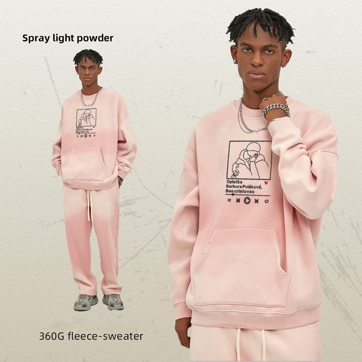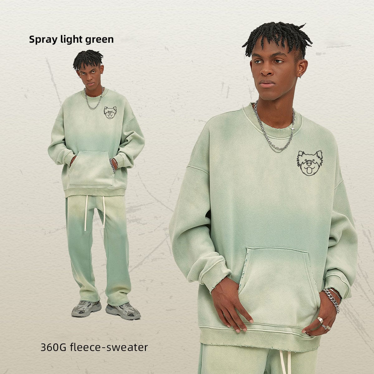 Personalized embroidered 360g spray-dyed pocket old crewneck hoodie