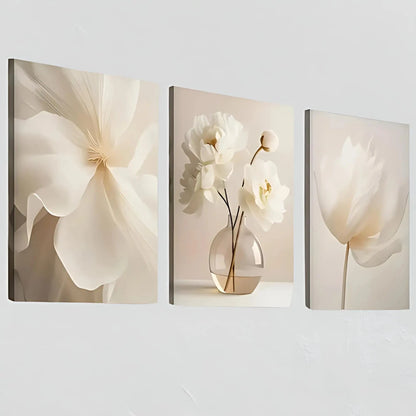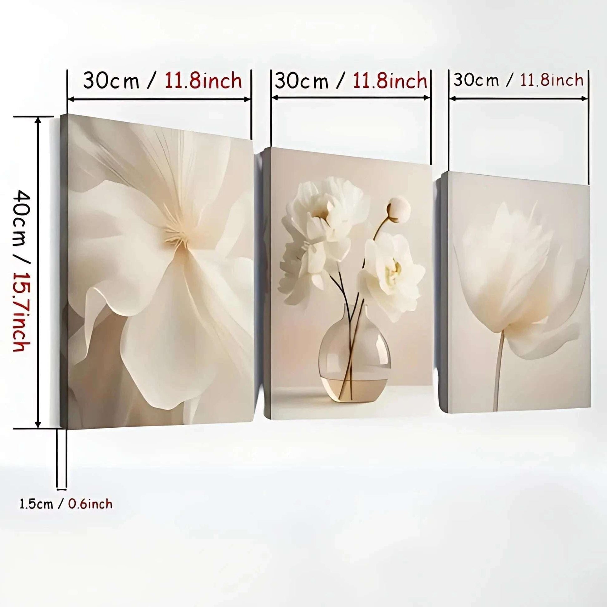 Triple Delight: Beige Floral 2D Printed Framed Art - Ideal for Every Room & a Perfect Gift!