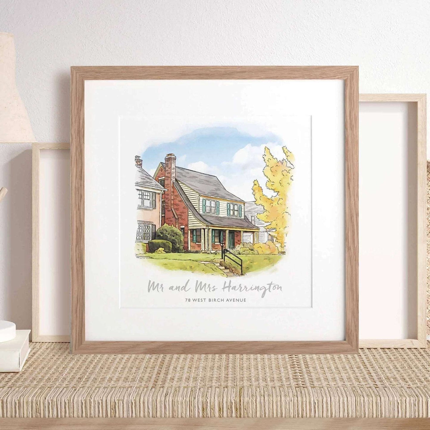 We can draw a variety of buildings or scenes - from flats, houses and bungalows, to farms, holiday homes and favorite views. We draw in a sketchy style to capture the home, and color in our painterly watercolor style. The illustration is personalized with your chosen words and digitally printed.