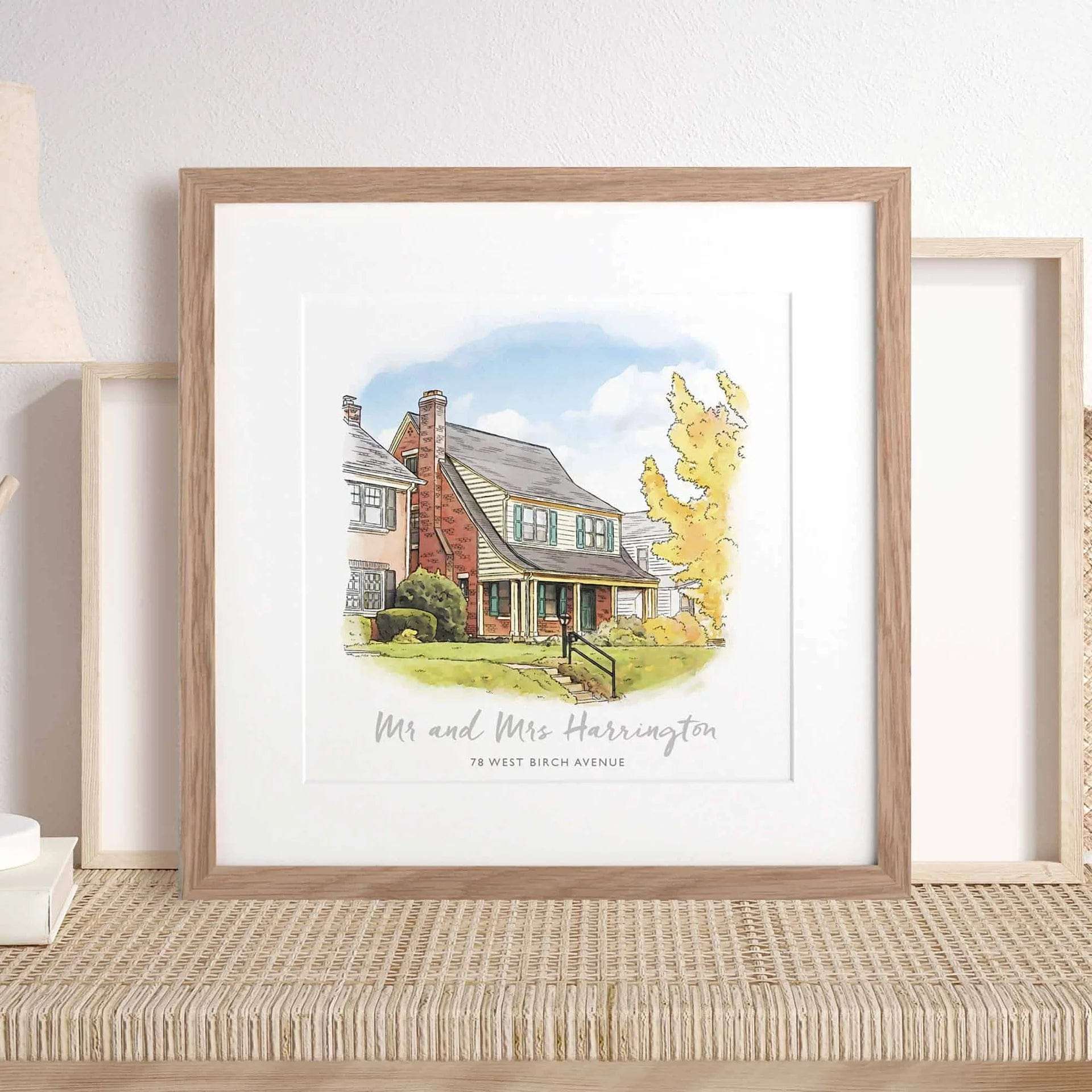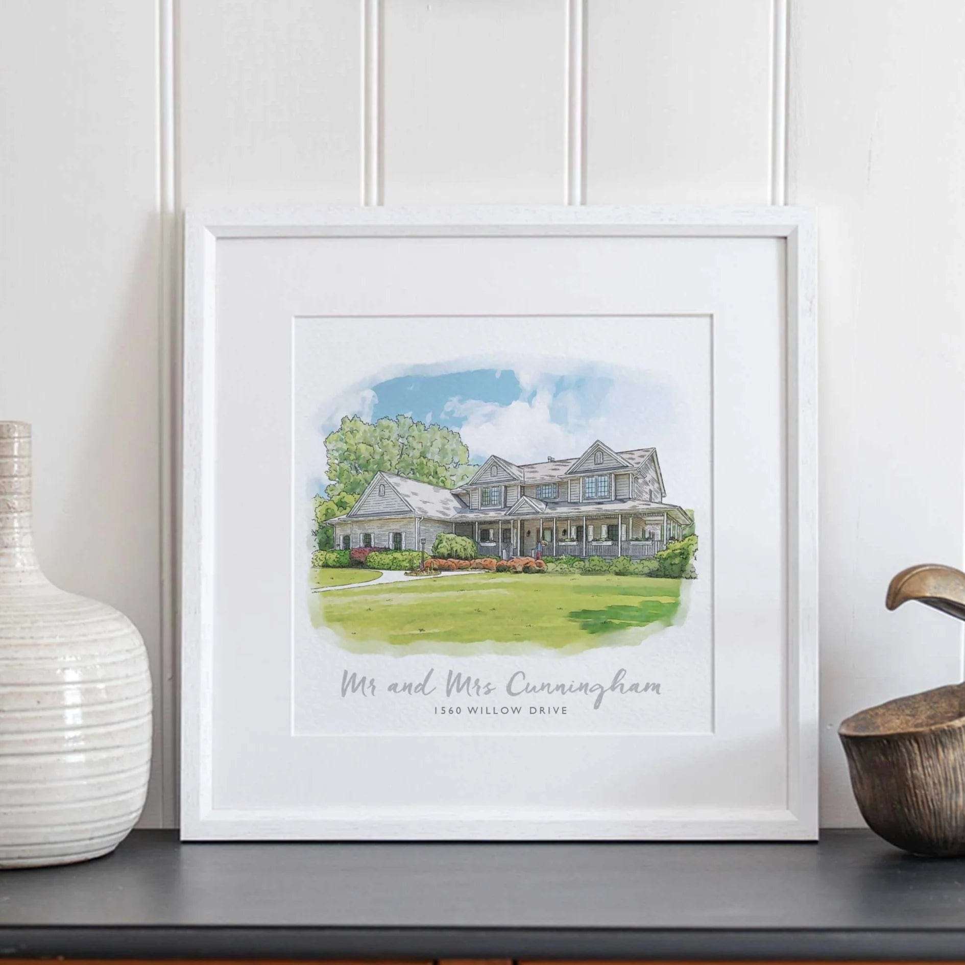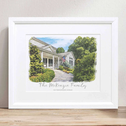 A personalized watercolor sketch of your house, hand-drawn by our team of wonderfully talented artists and printed with your choice of text. This makes the perfect housewarming gift, birthday surprise, or Christmas present.